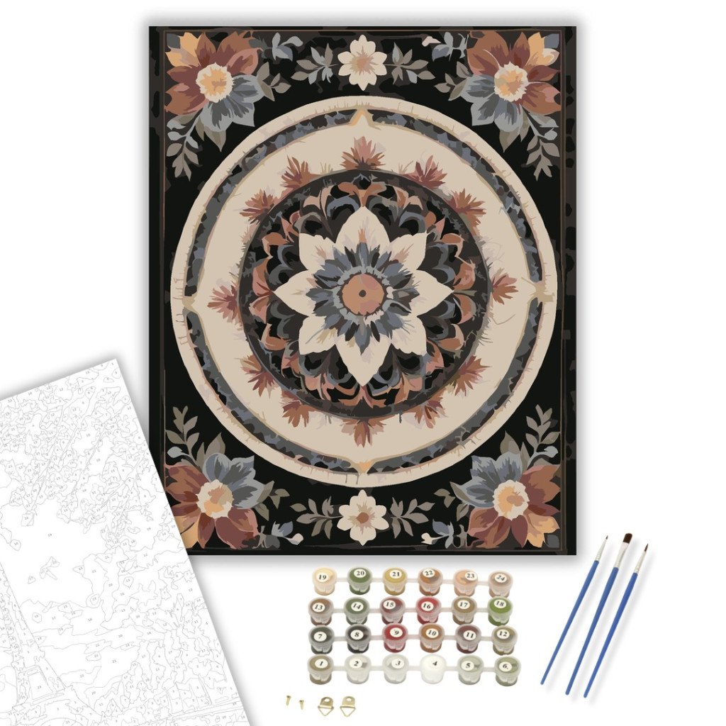 Virágos Mandala Bonyolult Mintázattal - számfestő készlet - Számfestő.hu - 60×70cm - keret nélkül
