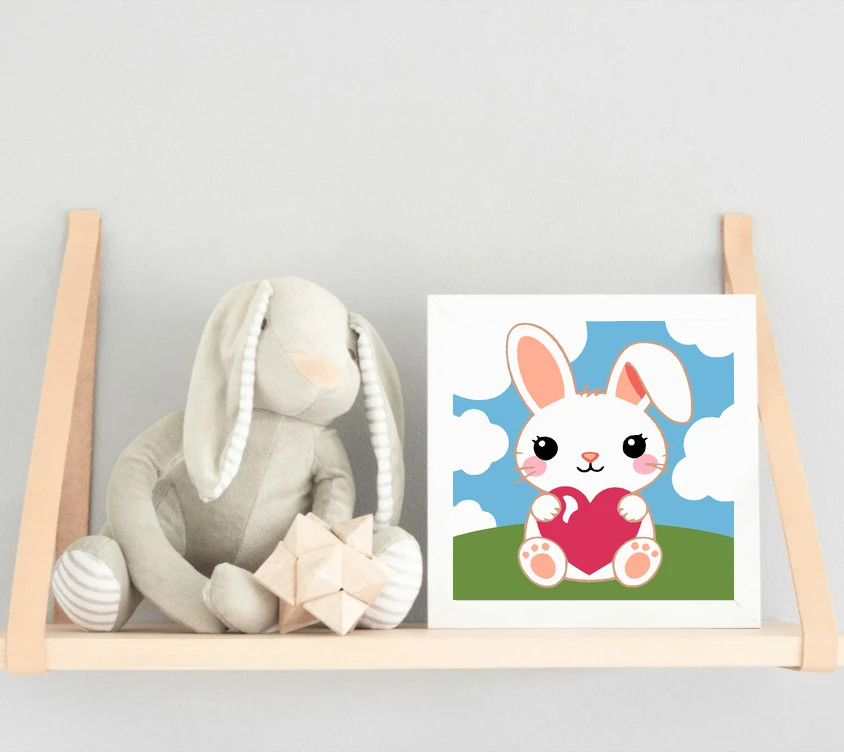 Álmodozó nyuszi szeretete - gyerek számfestő készlet - Számfestő.hu - 20×20cm - Keretre feszítve