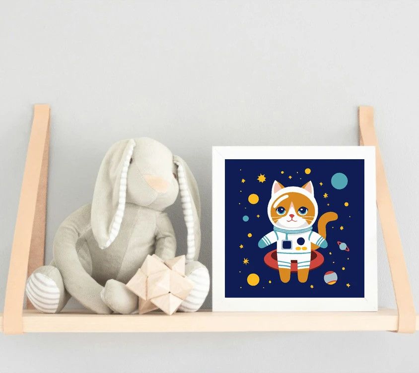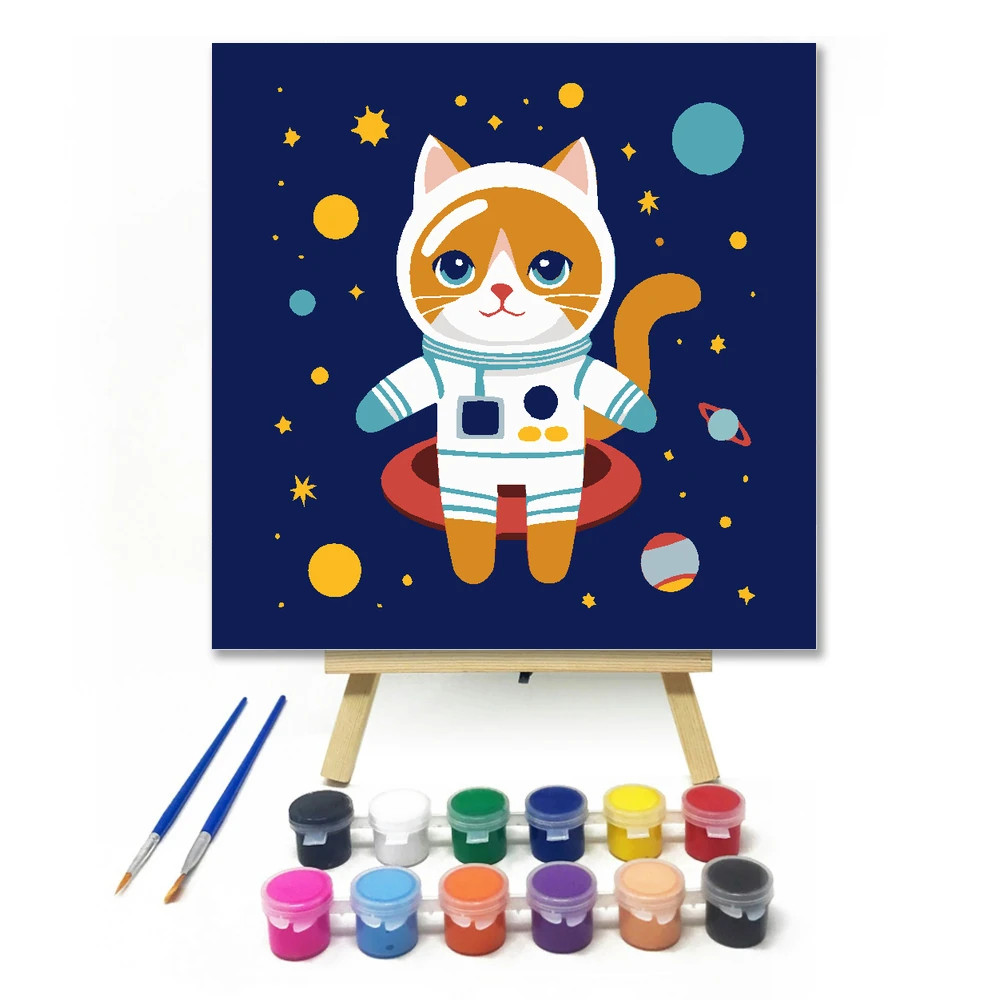 Álmodozó űrcica kalandja - gyerek számfestő készlet – 20×20 cm (Keretre feszítve)