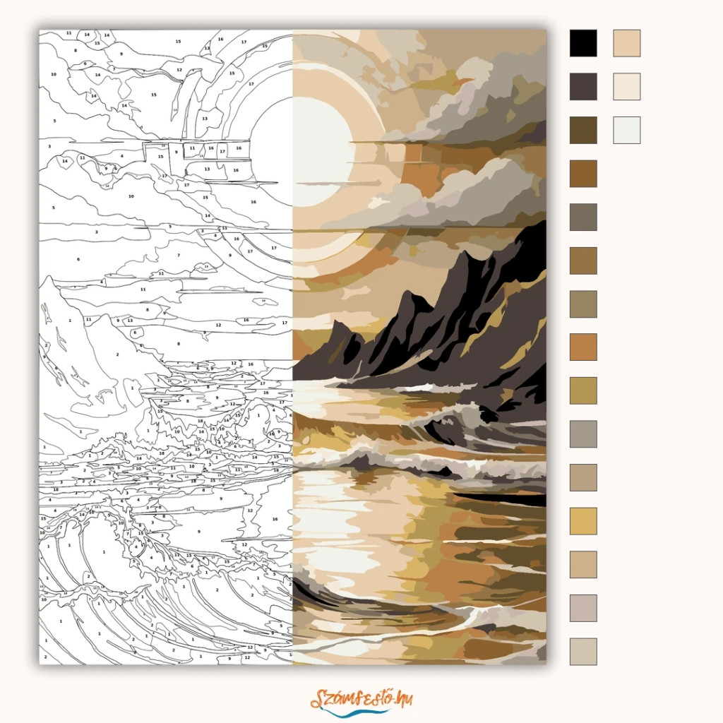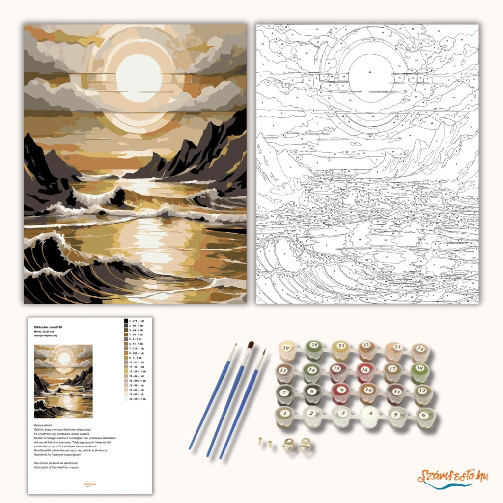 Aranyló napkorong - számfestő készlet - Számfestő.hu - 40×50cm - Keretre feszítve