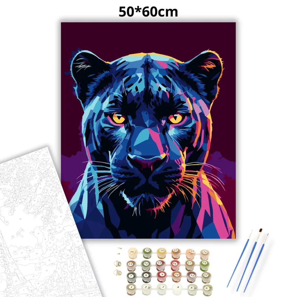 Átható párduc pillantás - számfestő készlet - Számfestő.hu - 50×60cm - Keret nélkül