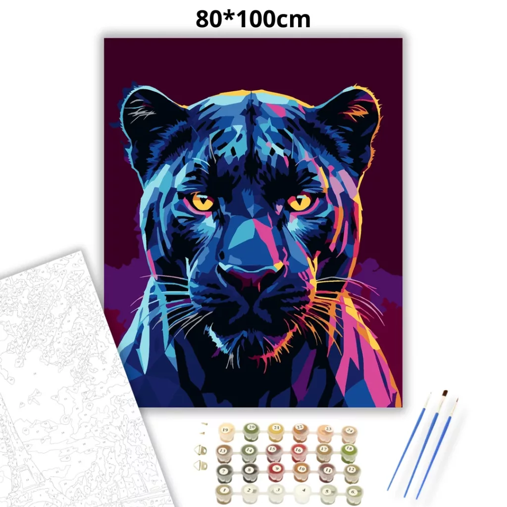 Átható párduc pillantás - számfestő készlet - Számfestő.hu - 80×100cm - Keret nélkül