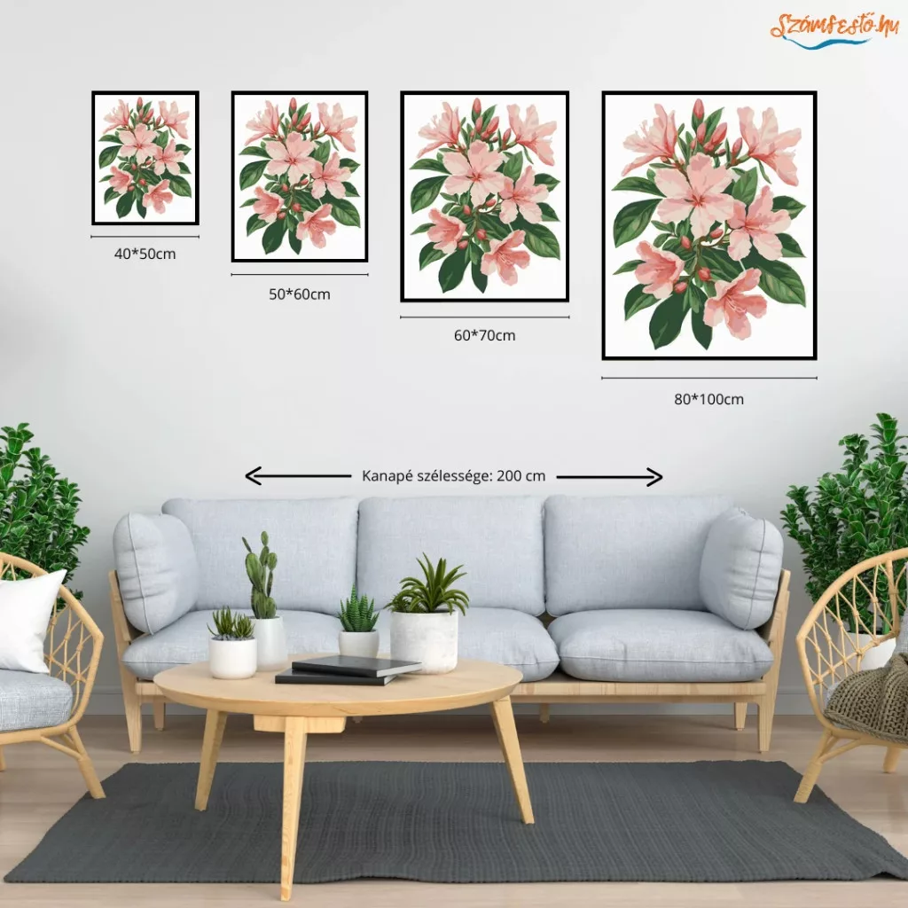 Azálea virágzás - számfestő készlet - Számfestő.hu - 80×100cm - Keret nélkül