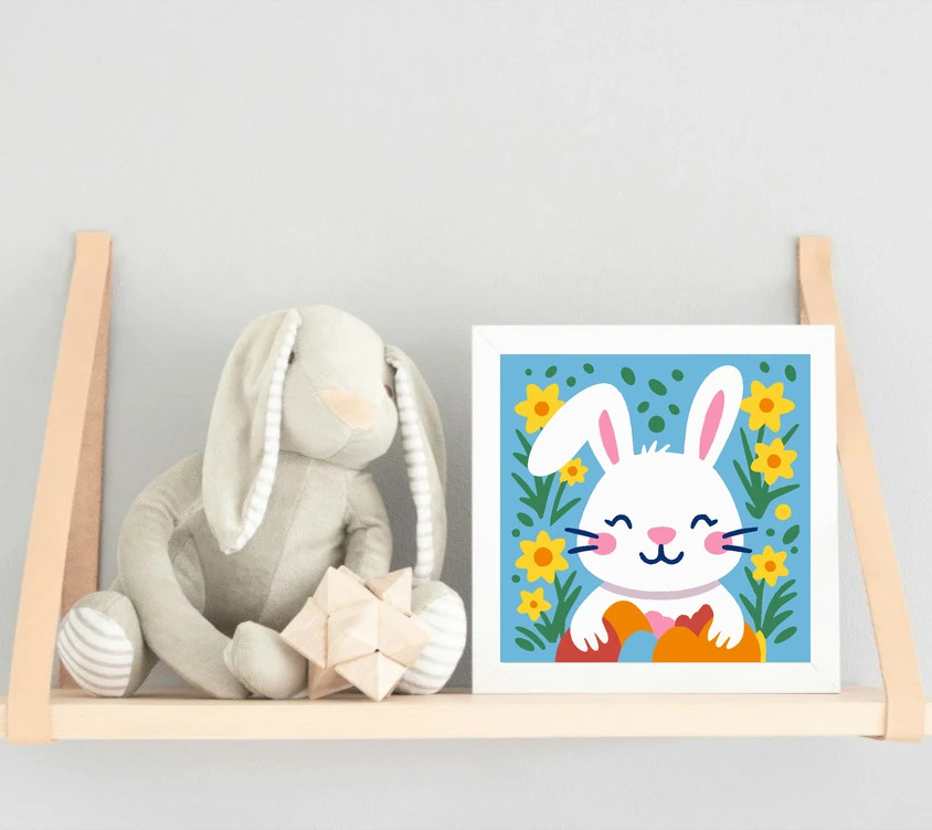 Bájos húsvéti nyuszi - gyerek számfestő készlet - Számfestő.hu - 20×20cm - Keret nélkül