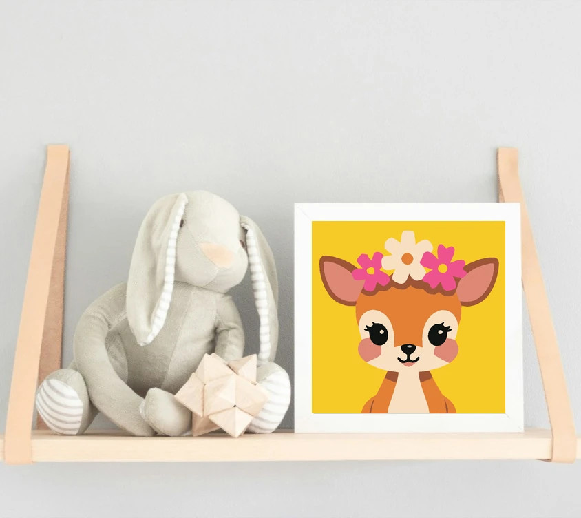 Ezen a képen egy kedves kis őzike néz rád nagy, csillogó szemekkel, a fején virágkoszorúval. A narancssárga-barna bunda és a krémszínű pofi szépen kiemelkedik. A vidám sárga háttér igazán napfényes hangulatot ad. Engedd szabadjára a kreativitásodat, és alkoss egy különleges műalkotást, amely otthonod dísze lehet de egyedi ajándékként is kiváló. A számfestő készletben minden szükséges eszközt megtalálsz a tökéletes végeredményhez.