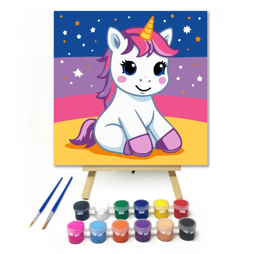 Bájos pihenő unikornis - gyerek számfestő készlet – 40×40 cm (Keretre feszítve)