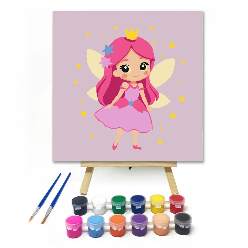 Bájos tündérhercegnő - gyerek számfestő készlet – 20×20 cm (Keretre feszítve)