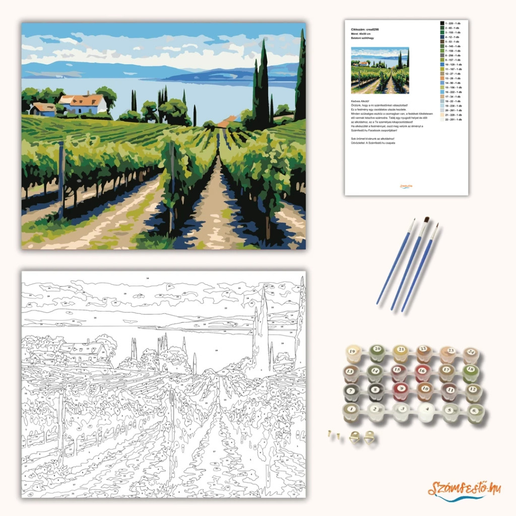 Balatoni szőlőhegy - számfestő készlet - Számfestő.hu - 40×50cm - Keretre feszítve