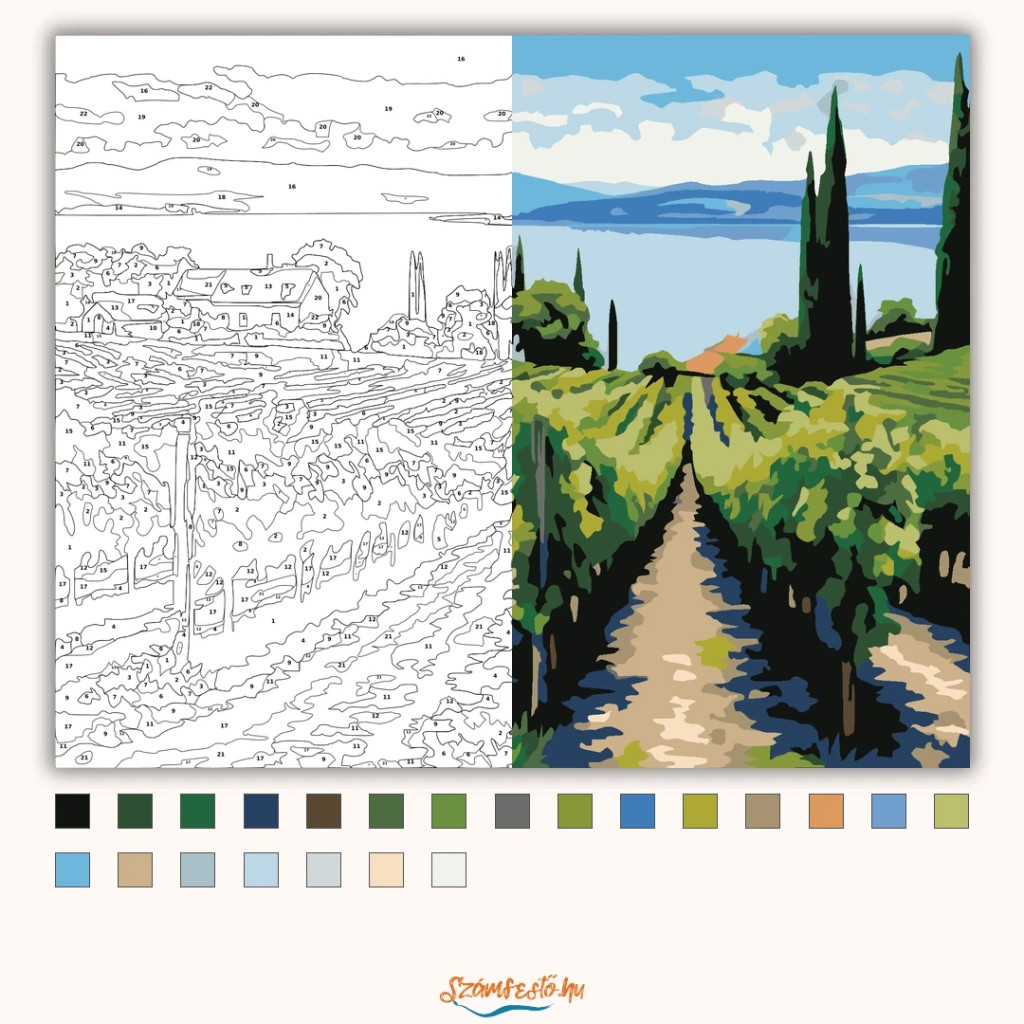 Balatoni szőlőhegy - számfestő készlet - Számfestő.hu - 80×100cm - Keret nélkül