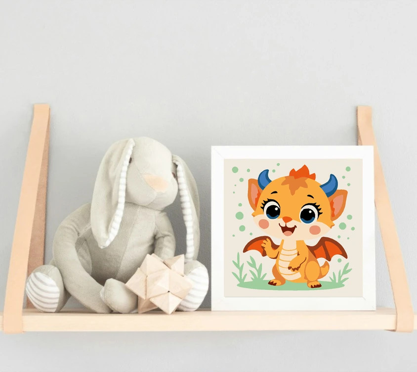 Barátságos kis sárkány - gyerek számfestő készlet - Számfestő.hu - 40×40cm - Keret nélkül