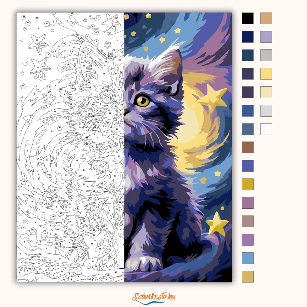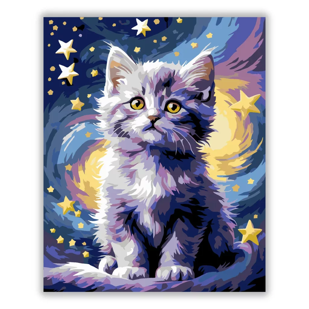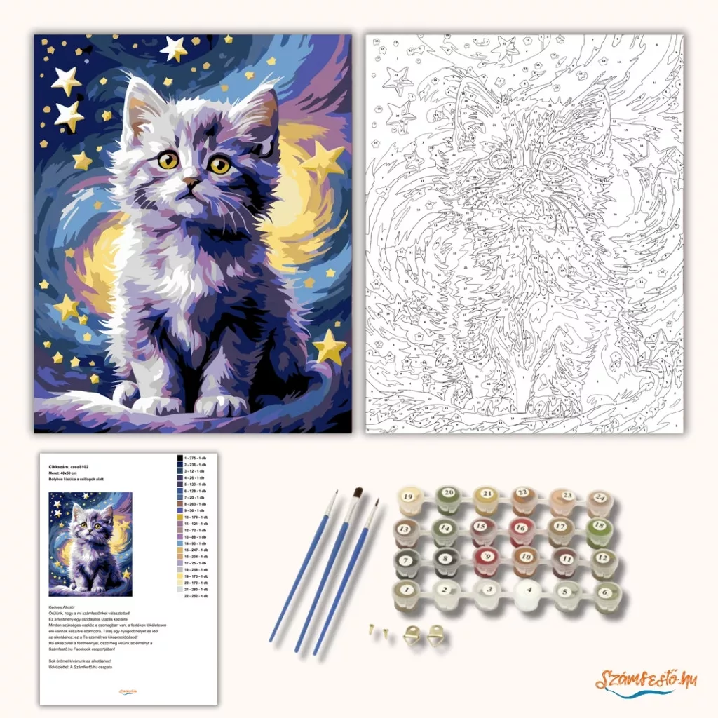 Számfestő készlet - Bolyhos kiscica a csillagok alatt