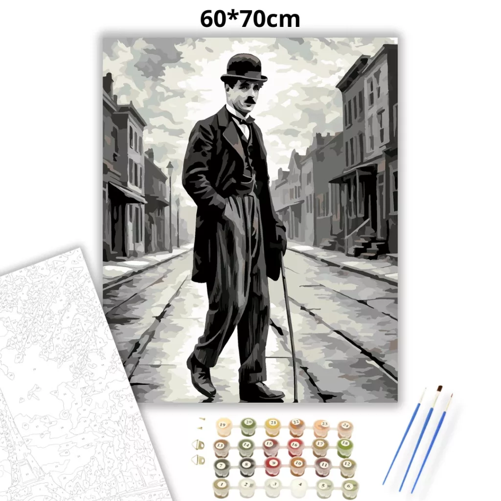 Charlie Chaplin - A csavargó - számfestő készlet – 60×70 cm (Keretre feszítve)