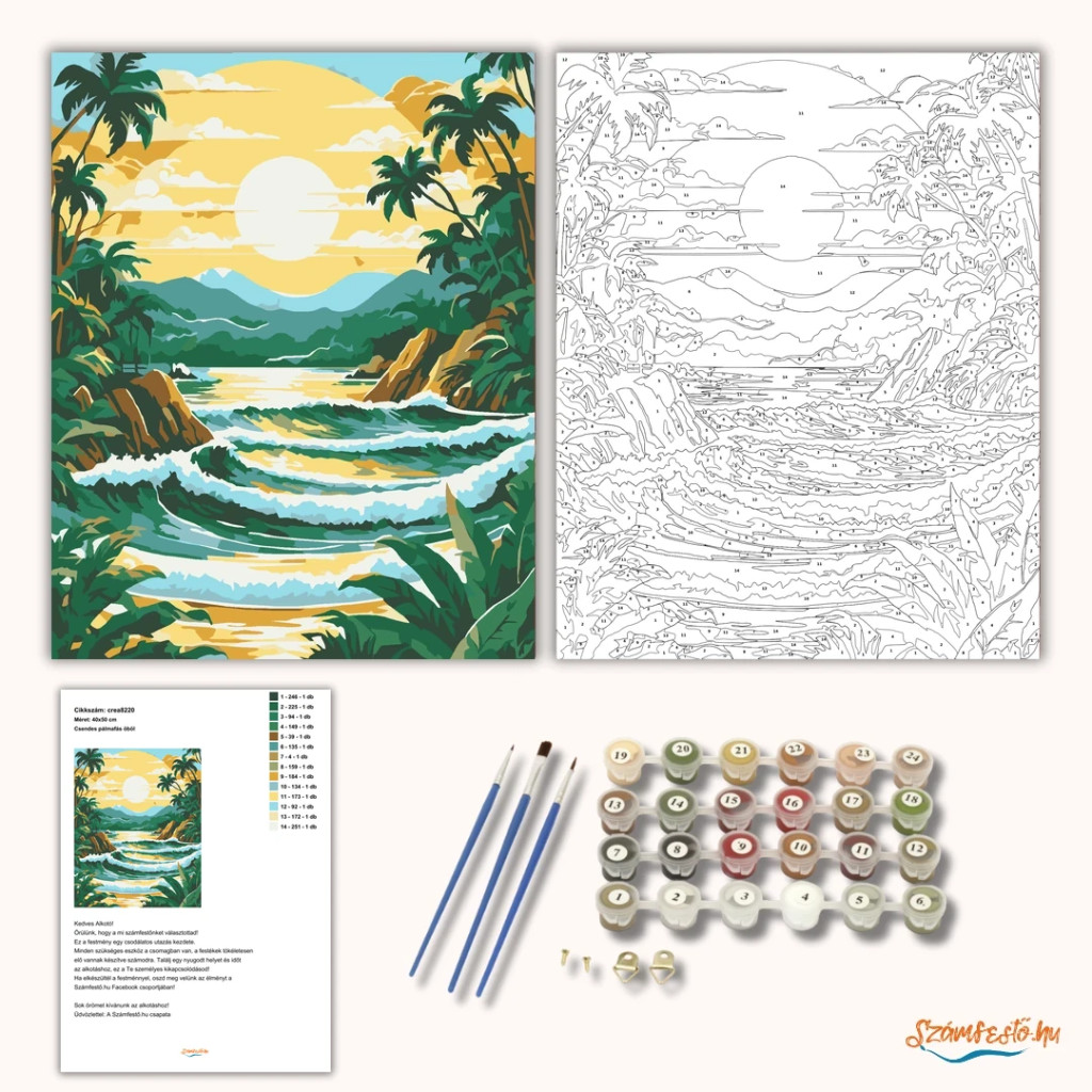 • Mintakép: Egy A4-es nyomtatott előnézeti kép a kész festményről, amely segít eligazodni munka közben.