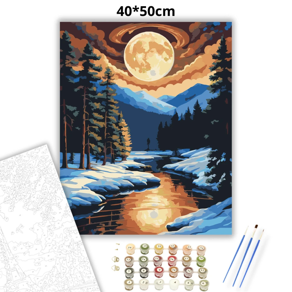 Csendes téli patak - számfestő készlet
