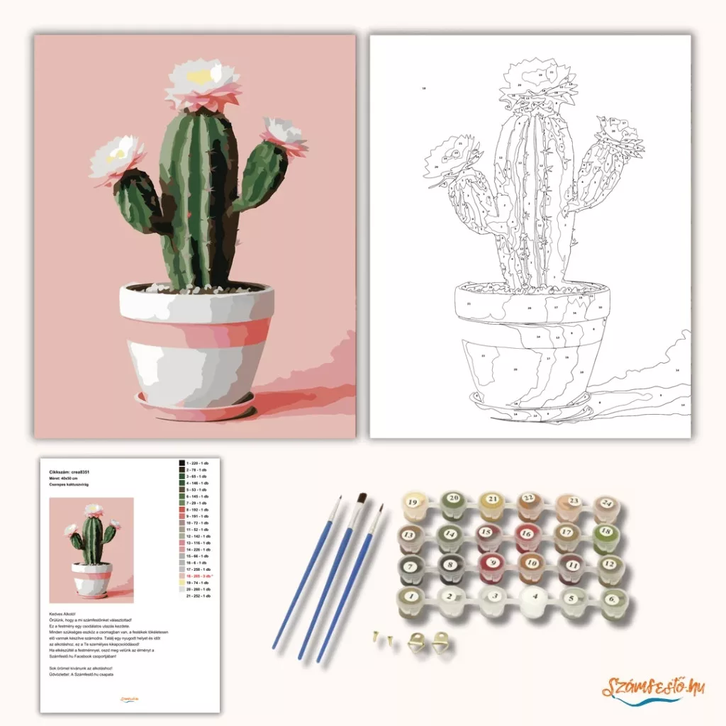 Cserepes kaktuszvirág - számfestő készlet – 50×60 cm (Keret nélkül)