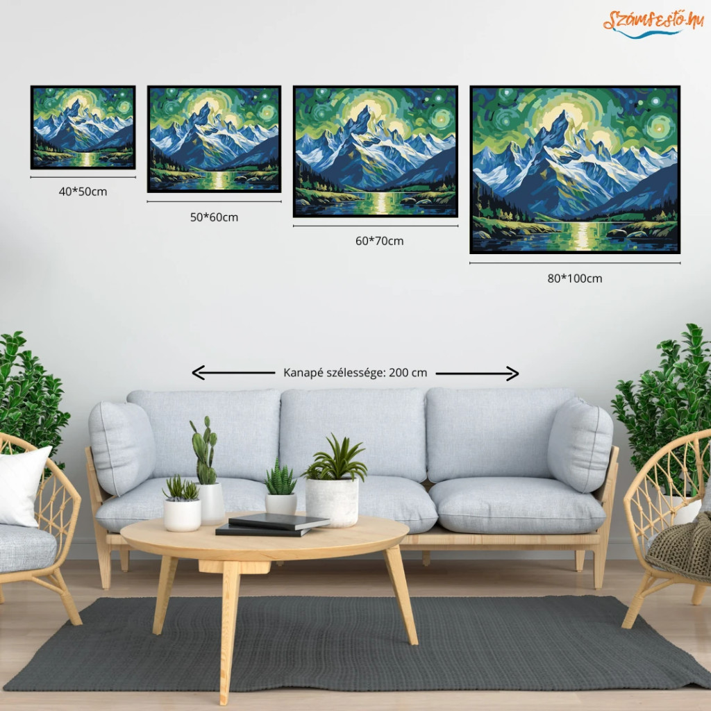 Csillagfényes hegycsúcsok - számfestő készlet – 40×50 cm (Keretre feszítve)