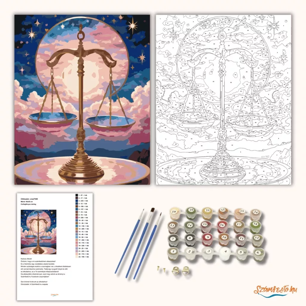 Csillagfényes mérleg - számfestő készlet – 50×60 cm (Keretre feszítve)