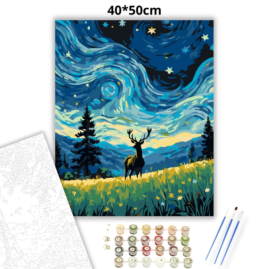 Csillagfényes szarvas - számfestő készlet – 40×50 cm (Keret nélkül)
