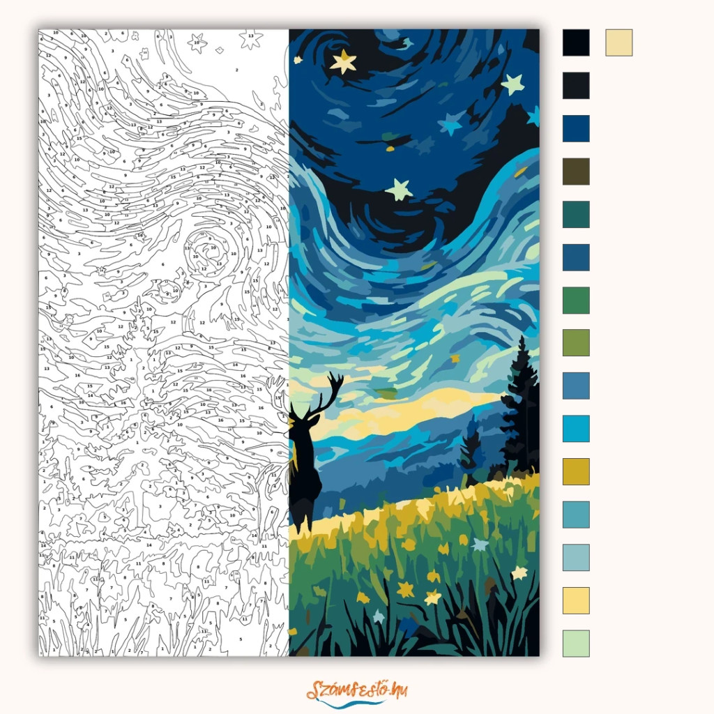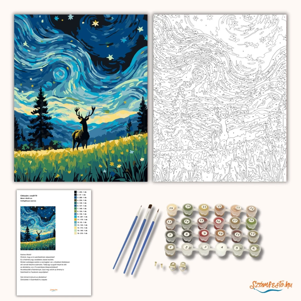 Csillagfényes szarvas - számfestő készlet - Számfestő.hu - 40×50cm - Keret nélkül