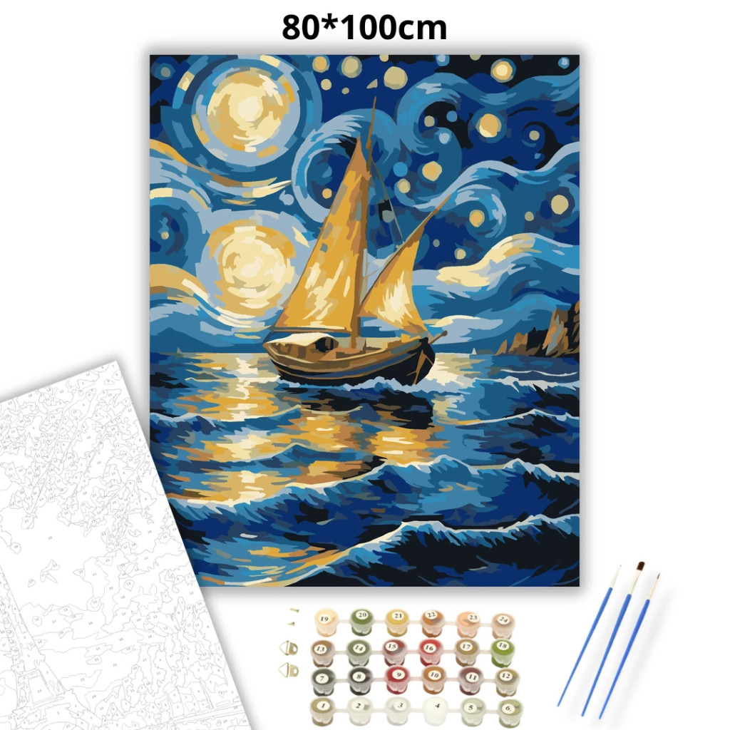Csillagfényes vitorlás - számfestő készlet – 80×100 cm (Keret nélkül)
