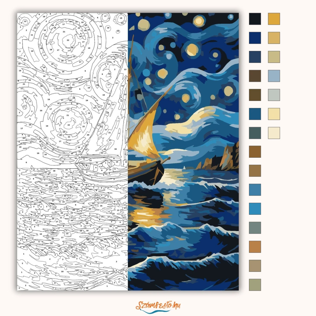 Csillagfényes vitorlás - számfestő készlet - Számfestő.hu - 80×100cm - Keret nélkül
