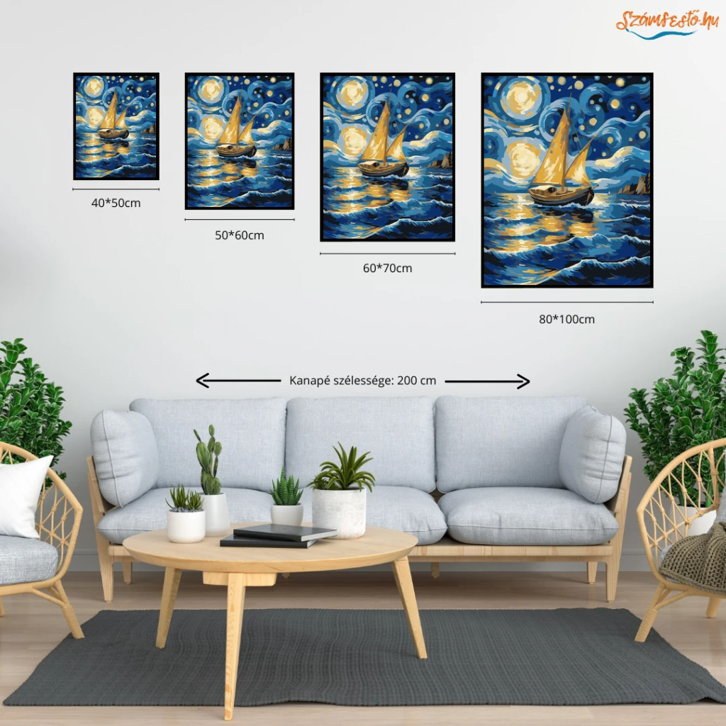 Csillagfényes vitorlás - számfestő készlet - Számfestő.hu - 80×100cm - Keretre feszítve