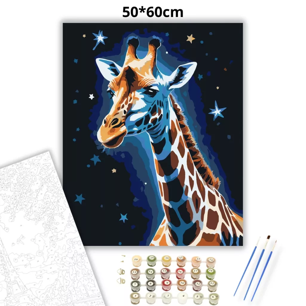 Csillagfényes zsiráf - számfestő készlet – 50×60 cm (Keret nélkül)
