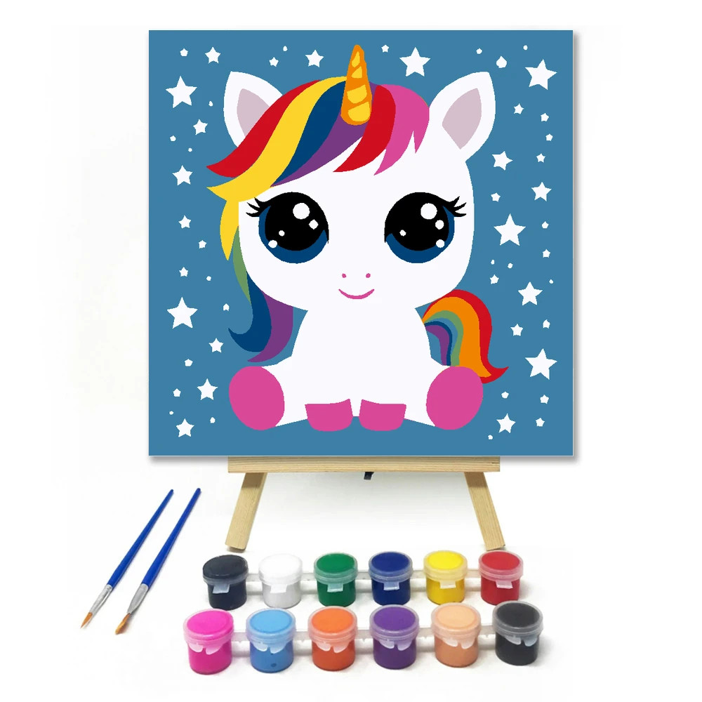 Csillagszemű unikornis - gyerek számfestő készlet – 20×20 cm (Keret nélkül)