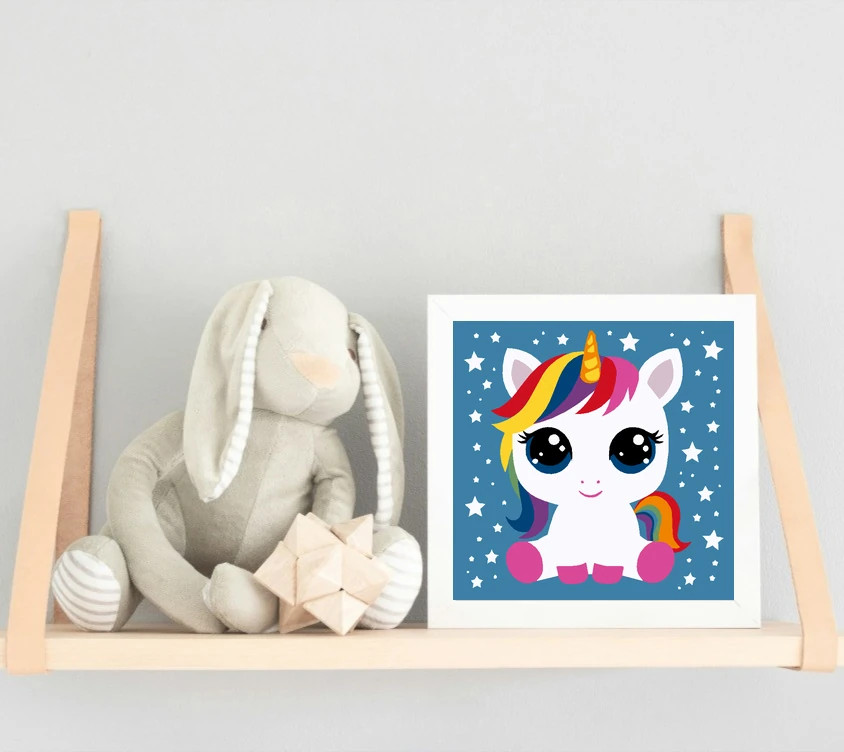 Csillagszemű unikornis - gyerek számfestő készlet - Számfestő.hu - 20×20cm - Keret nélkül