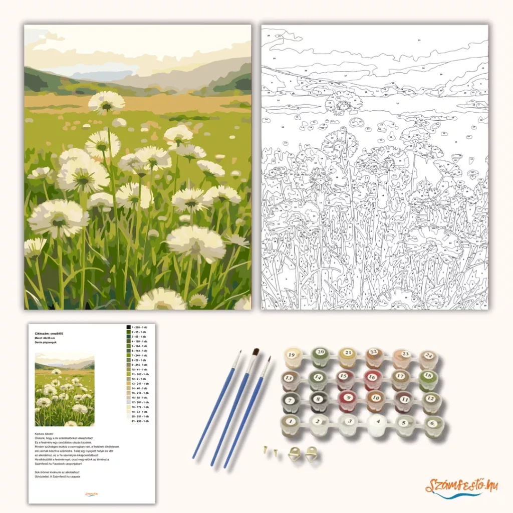 Derűs pitypangok - számfestő készlet - Számfestő.hu - 50×60cm - Keretre feszítve
