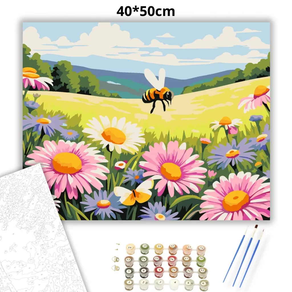 Derűs poszméh a réten - számfestő készlet - Számfestő.hu - 40×50cm - Keret nélkül