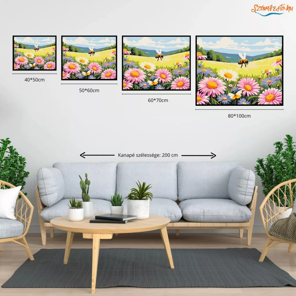 Derűs poszméh a réten - számfestő készlet - Számfestő.hu - 50×60cm - Keret nélkül