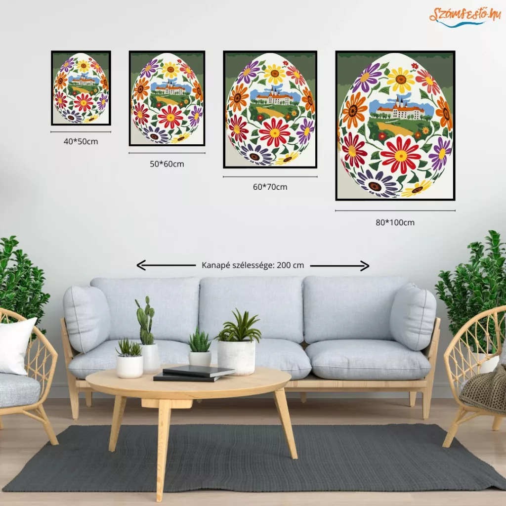 Díszített népies tojás - számfestő készlet - Számfestő.hu - 80×100cm - Keretre feszítve