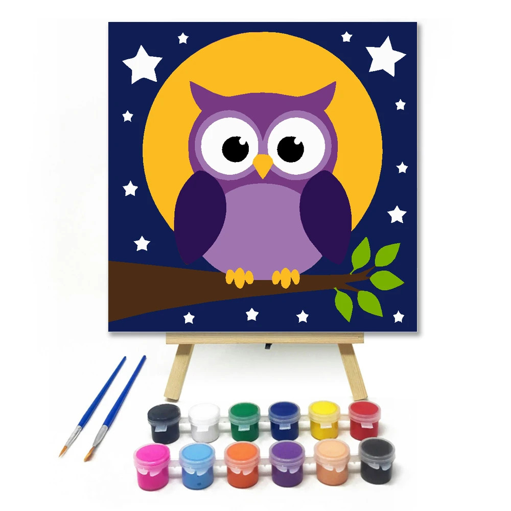 Éjszakai lila bagoly - gyerek számfestő készlet