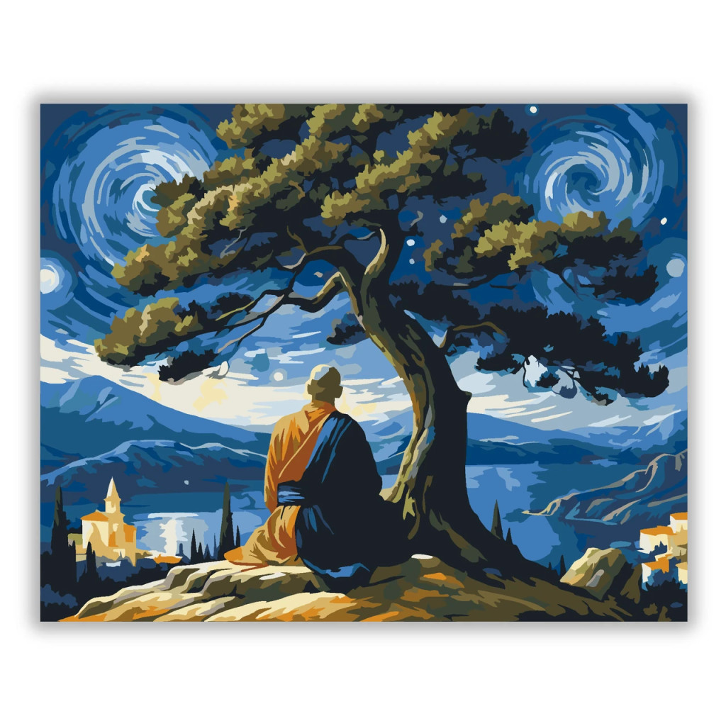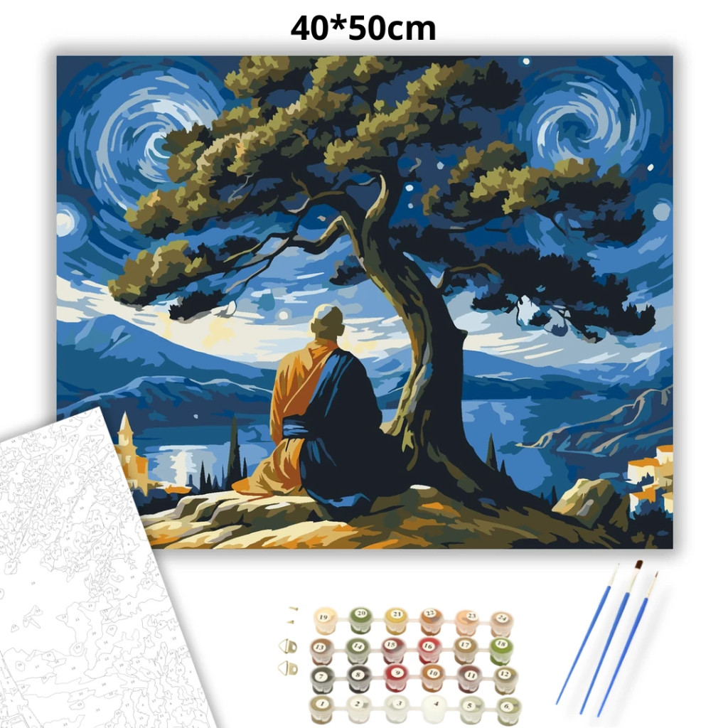 Elmélkedő fa alatt - számfestő készlet – 40×50 cm (Keret nélkül)