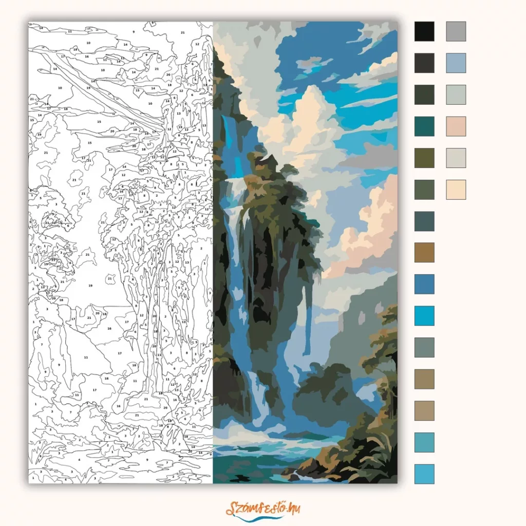 Felhők feletti vízesések - számfestő készlet - Számfestő.hu - 60×70cm - Keretre feszítve