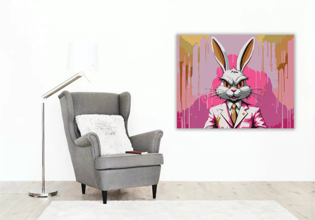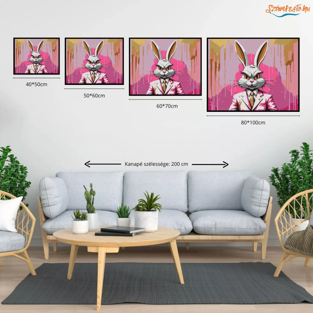 Főnöki nyúl - számfestő készlet - Számfestő.hu - 50×60cm - Keretre feszítve