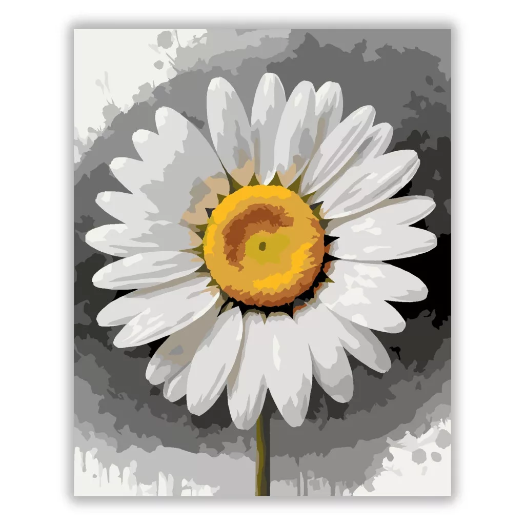 A képen egy fehér margaréta látható, középen élénk sárga virágközéppel. A szirmok finom árnyékai és a sötétebb háttér szépen kiemelik a virágot. Friss, letisztult hangulatú kép, ami jól mutat bármelyik szobában. Legyen a lakásod dísze vagy egy kedves meglepetés valaki számára – ez a számfestő készlet tökéletes választás mindkettőre. A készletben mindent megtalálsz, amivel lépésről lépésre megalkotható ez a gyönyörű festmény.