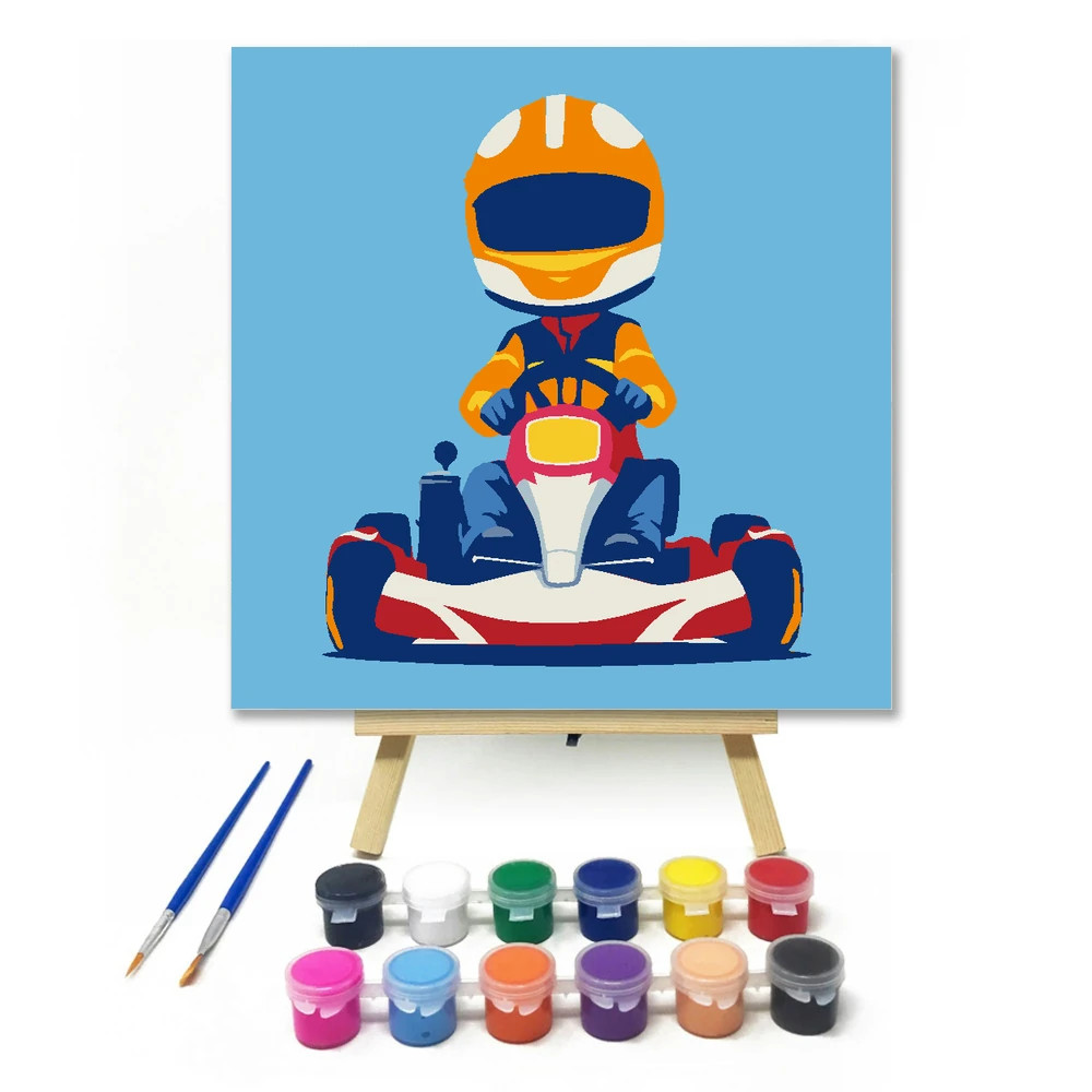 Fürge gokartos - gyerek számfestő készlet – 40×40 cm (Keret nélkül)