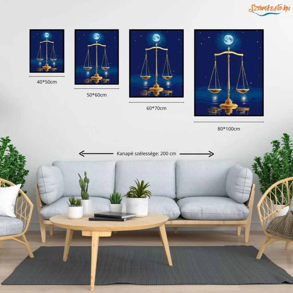 Holdfényes mérleg - számfestő készlet - Számfestő.hu - 60×70cm - Keret nélkül