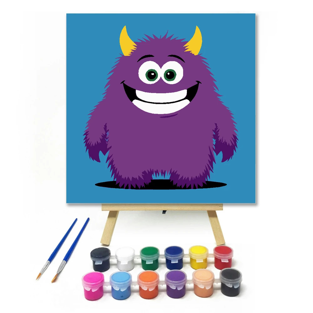 Huncut szörnyecske mosolya - gyerek számfestő készlet – 20×20 cm (Keret nélkül)
