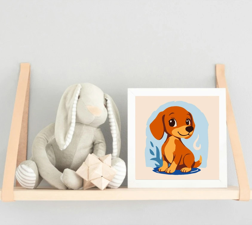 A képen egy mosolygós kiskutya ül, nagy szemekkel néz rád. A barna és bézs színek dominálnak, a háttérben világoskék foltokkal. Szuper választás, ha szereted az állatos képeket! Legyen a lakásod dísze vagy egy kedves meglepetés valaki számára – ez a számfestő készlet tökéletes választás mindkettőre. A készletben mindent megtalálsz, amivel lépésről lépésre megalkotható ez a gyönyörű festmény.