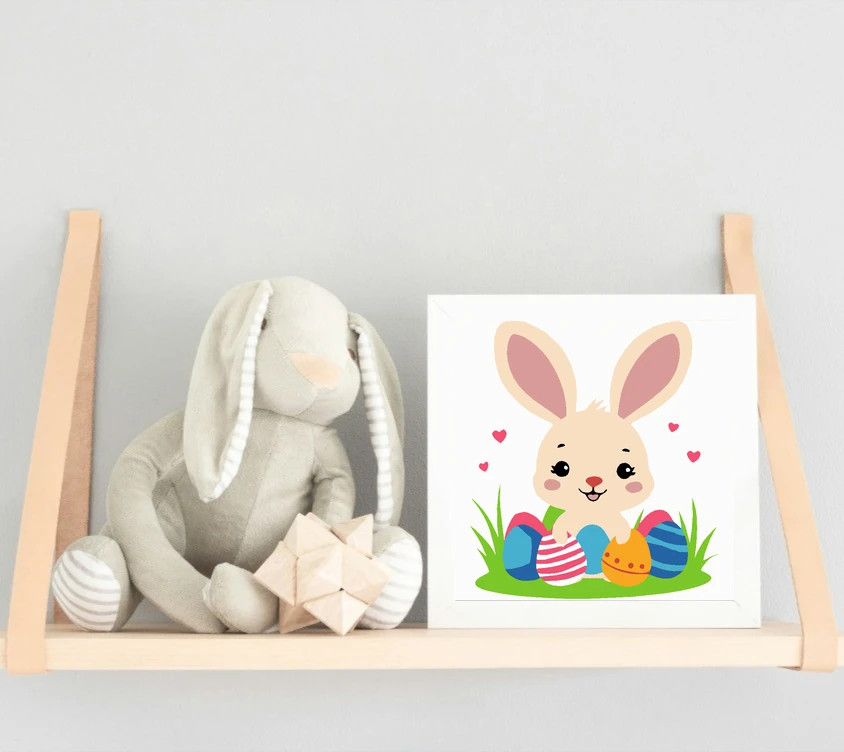 Játékos nyuszi tojásokkal - gyerek számfestő készlet – 40×40 cm (Keretre feszítve)