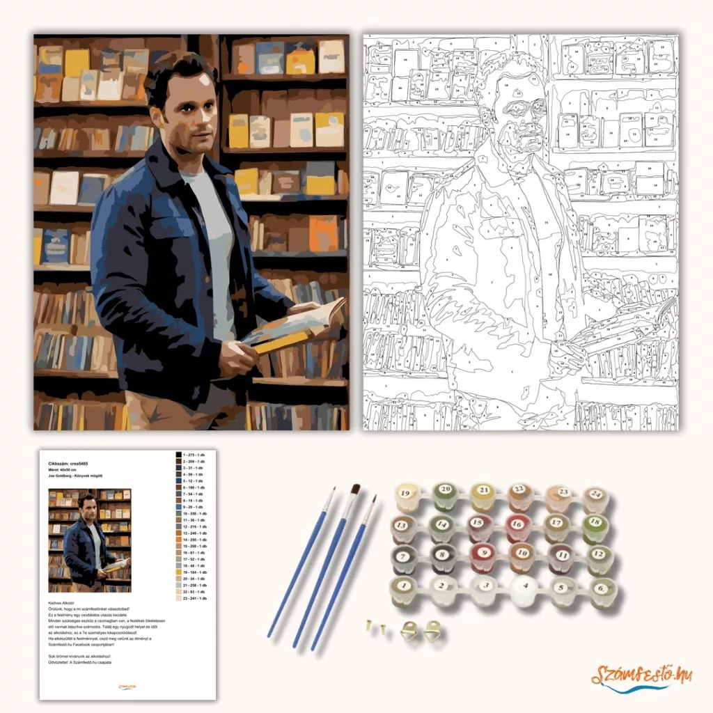 Joe Goldberg - Könyvek mögött - számfestő készlet – 50×60 cm (Keret nélkül)