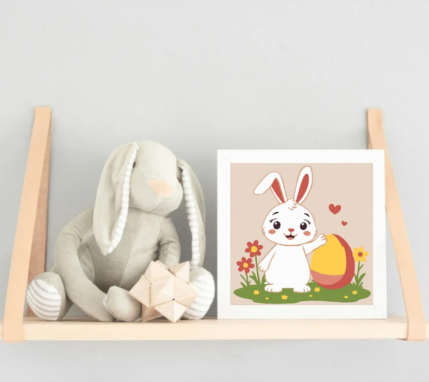 Kedves nyuszi tojása - gyerek számfestő készlet - Számfestő.hu - 50×50cm - Keretre feszítve
