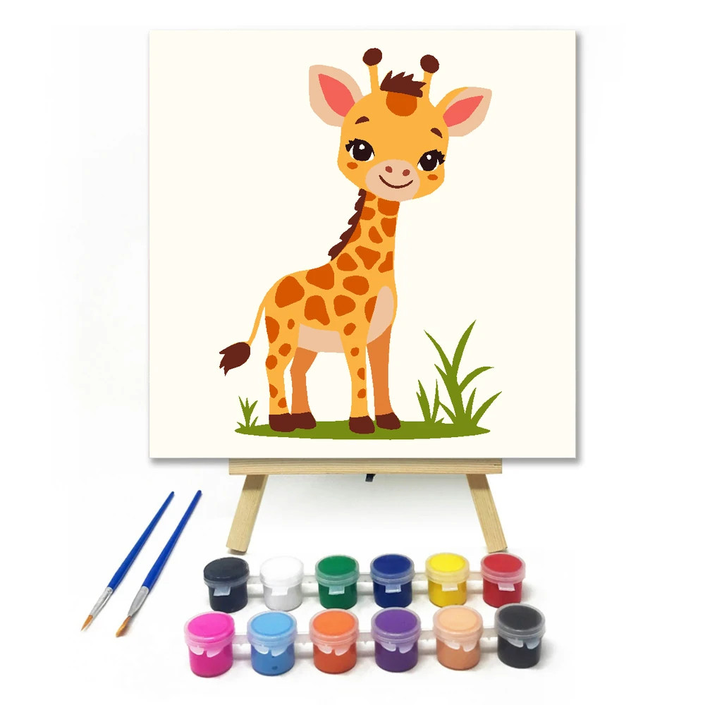Kis zsiráf mosolya - gyerek számfestő készlet – 30×30 cm (Keretre feszítve)