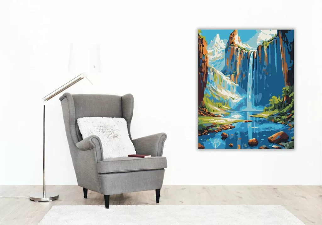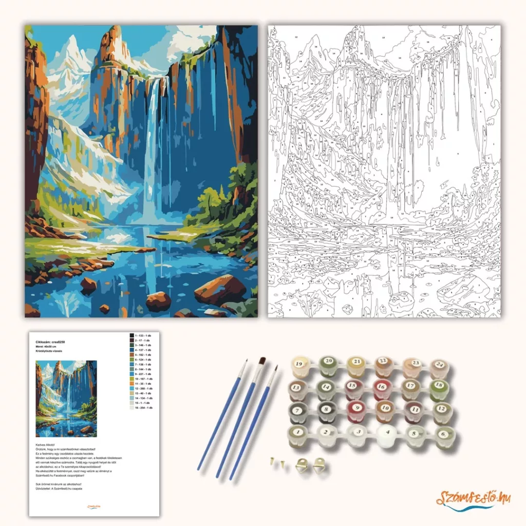Kristálytiszta vízesés - számfestő készlet – 40×50 cm (Keretre feszítve)