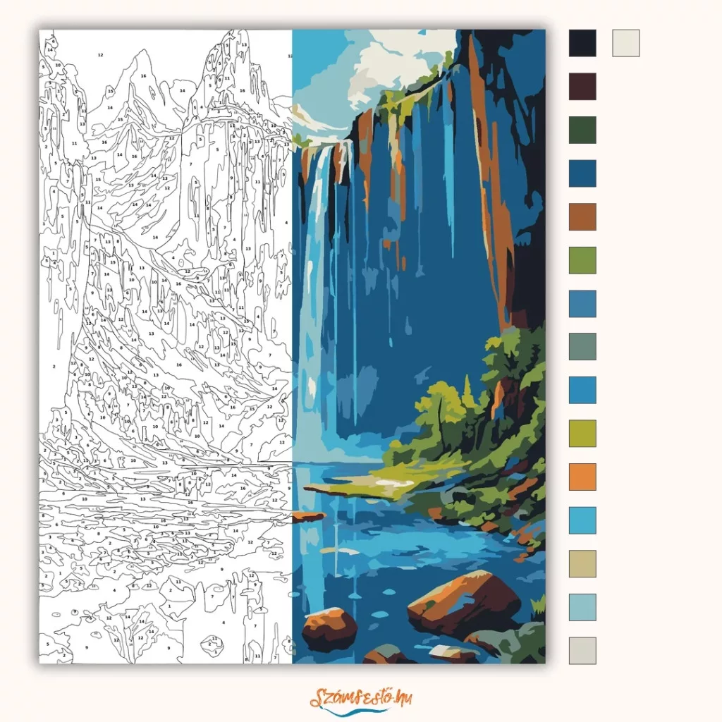 Kristálytiszta vízesés - számfestő készlet - Számfestő.hu - 40×50cm - Keretre feszítve