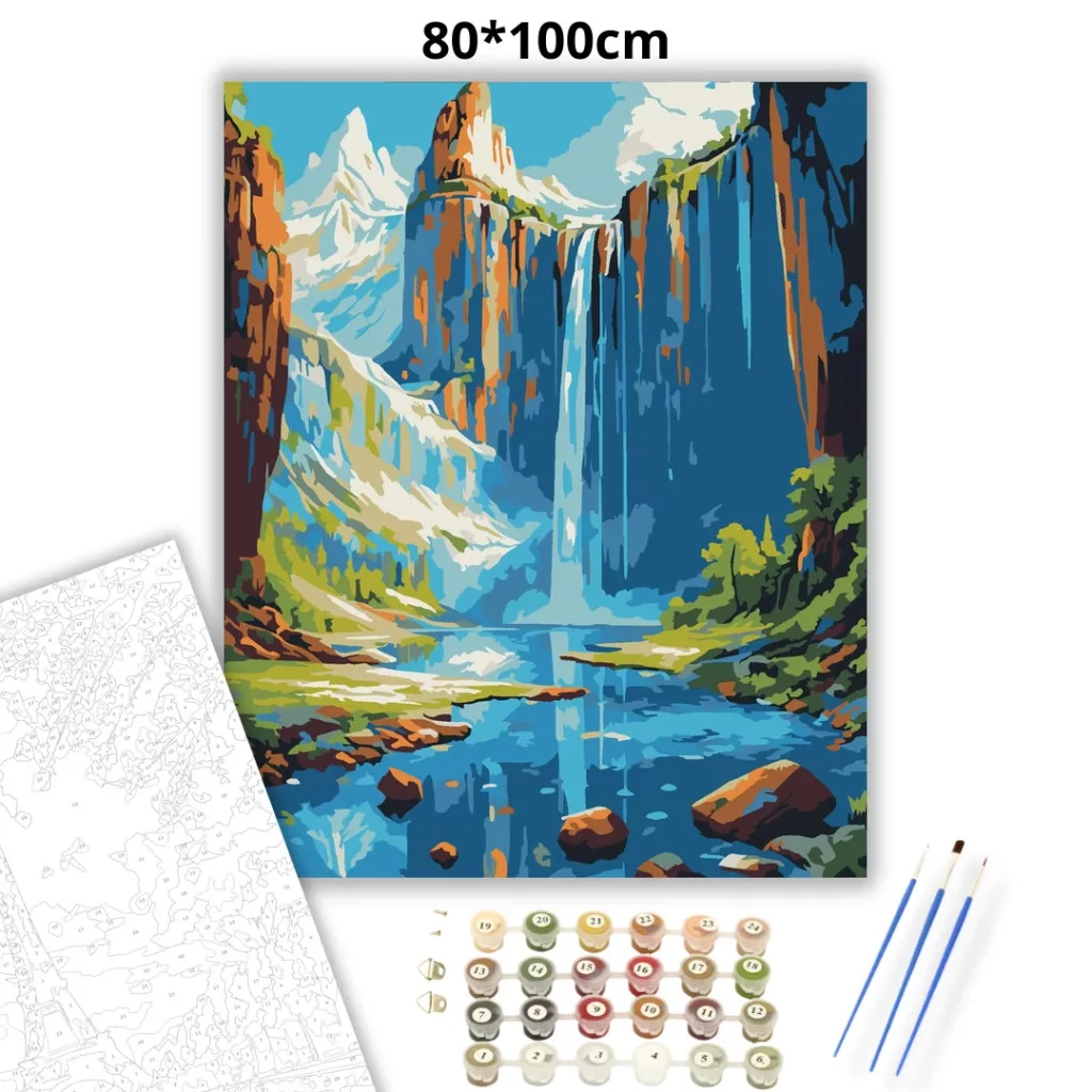 Kristálytiszta vízesés - számfestő készlet – 80×100 cm (Keret nélkül)