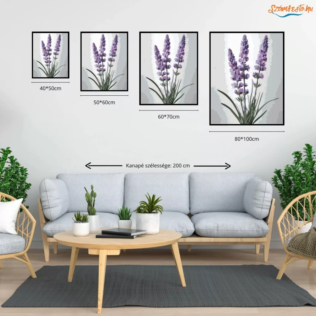 Letisztult levendulák - számfestő készlet - Számfestő.hu - 50×60cm - Keretre feszítve